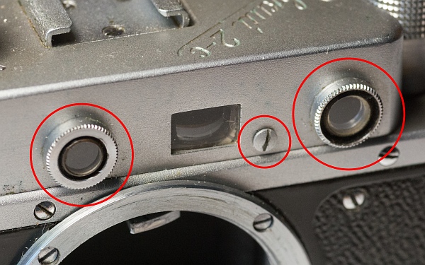 Um den Verschluss abzuschrauben, muss bei der Zorki C und 2C vorher der Messsucher entfernt werden, da der Verschluss hier von oben festgeschraubt ist.