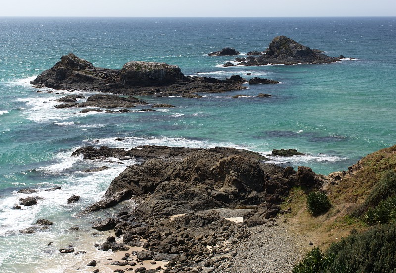 "Cocked Hat Rocks - swimmers of stone" bei Broken Head. Die Aborigines nenne diese beiden Felsen "Two sisters rock".