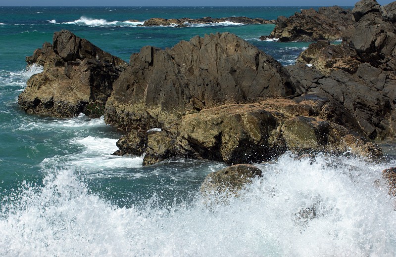 Die Felsen am Broken Head sind gut zugänglich, so daß man die Brandung hautnah erleben kann.