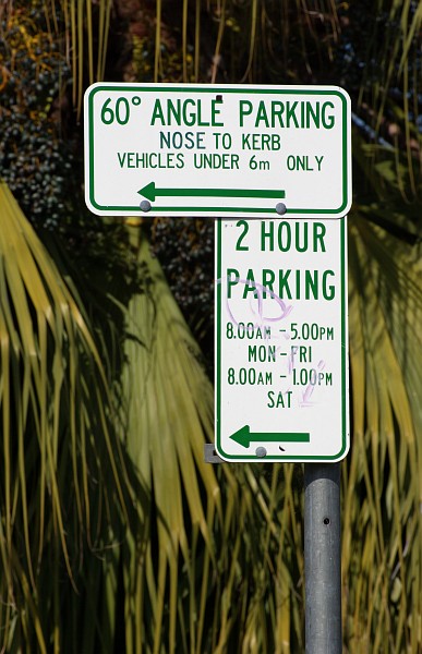 Man sagt nicht nur, wann man hier parken darf, nein, man schreibt sogar vor, wie man hier parken soll.
