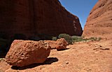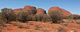 Kata Tjuta, auch Olgas genannt, ist eine Gruppe von 36 Inselbergen, ca. 30km vom Uluru entfernt. Der höchste Berg ist ca. 560m hoch. Der Name Kata Tjuta bedeutet "Viele Köpfe". Den Eingeborenen Australiens ist dieser Berg heilig.