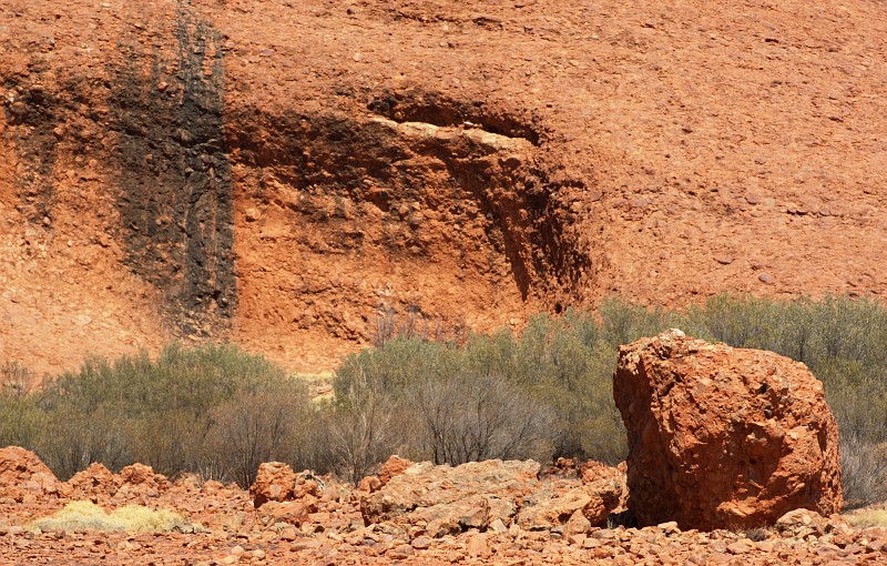Das Gestein des Kata Tjuta ist recht grobkörnig und erinnert eher an getrockneten Lehm.