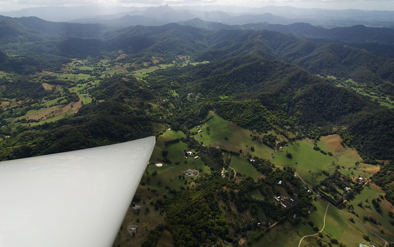Hügeliges Hinterland bei Brunswick Heads. Irgendwo im Hintergrund ist Mount Warning versteckt.