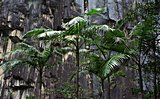 Im Night Cap National Park befinden sich die Minyon Falls. Das Wasser fällt etwa 100 Meter tief. Zur Zeit meines Besuchs führte der Fluß nur sehr wenig Wasser, sodaß der Wasserfall recht unspektakulär aussah. Es ist trotzdem ein Erlebnis, sich als einziger auf den Weg durch den Regenwald zu machen.