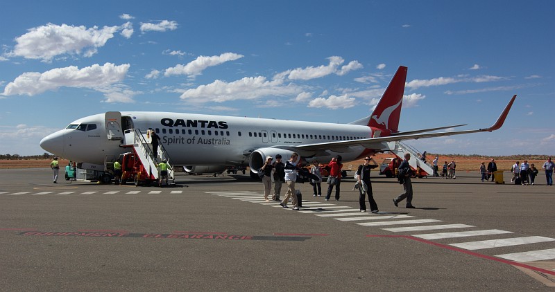 Yulara wird regelmäßig von allen Seiten Australiens aus angeflogen. Das Red Center empfängt einen schon zu Frühlingsanfang Mitte September mit 35° Celsius und maximal 20% bis 30% Luftfeuchtigkeit. Die Hitze läßt sich also gut aushalten.