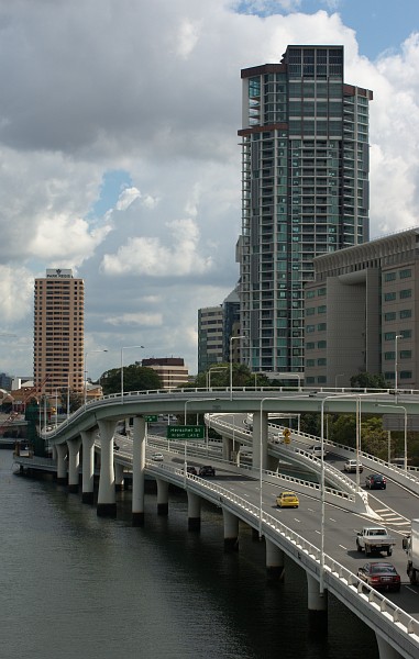 Der neue Freeway überspannt eine Seite des Brisbane-Rivers.