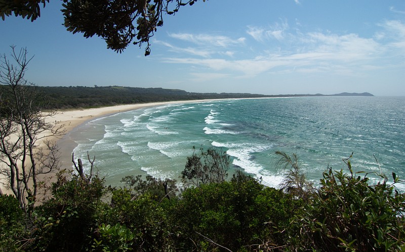 Blick den Tallow Beach von Broken Head rauf.