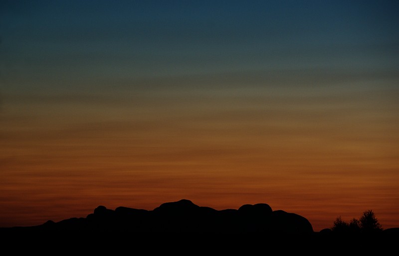 Kata Tjuta vor leuchtendem Himmel.