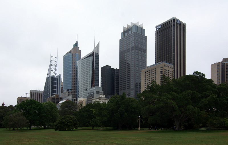 Die Skyline der Innenstadt vom Royal Botanic Garden aus.