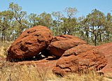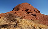 Der Uluru (Ayers Rock) liegt im Red Center, ca. 400km südwestlich von Alice Springs im Northern Territory. Er ist ca. 350m hoch, 3km lang und 2km breit. Die rostrote Farbe rührt vom hohen Eisengehalt des Sandsteins her, aus dem der Berg besteht.