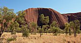 Der Uluru (Ayers Rock) liegt im Red Center, ca. 400km südwestlich von Alice Springs im Northern Territory. Er ist ca. 350m hoch, 3km lang und 2km breit. Die rostrote Farbe rührt vom hohen Eisengehalt des Sandsteins her, aus dem der Berg besteht.