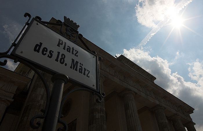 Der Platz vor dem Brandenburger Tor. Der Name soll an die Revolution von 1848 und an die ersten freien Volkskammerwahlen in der DDR am 18.3.1990 erinnern.