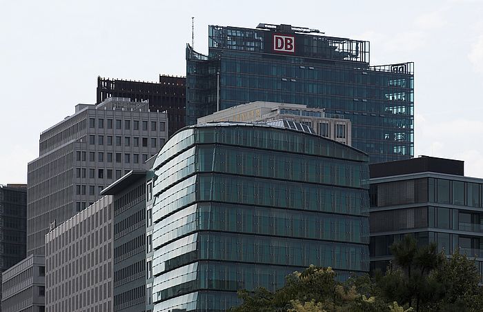 Blick vom Holocaust-Mahnmal auf den Potsdamer Platz.