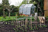 Versteckt zwischen Eibe und Rhododendron befand sich ein vernachlässigtes Gemüsebeet, was nach Fällen der Eibe und kräftigem Umgraben wieder reaktiviert wurde. 2013 wurde es uns dann zu klein und wir planten es 2014 zu erweitern, indem wir eine Rasenfläche, die sowieso nur schlecht mit dem Rasenmäher zu erreichen war, umgruben. Da der Boden hier auf der Elbinsel schwer und lehmig ist, war das eine entsprechend anstrengende Arbeit. Aber es hat sich gelohnt.