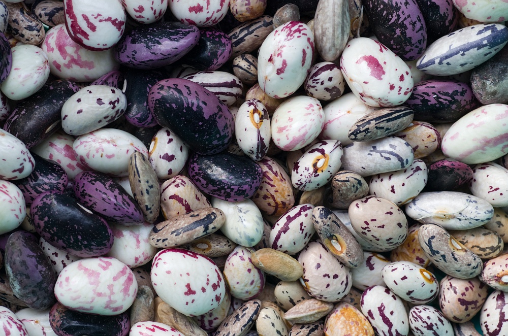 Bohnenernte 2014. Verschiedene bunte Stangen- und Buschbohnen.