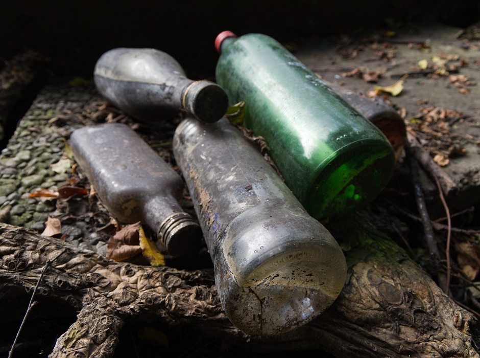 Flaschen, die aus dem Kanal geborgen wurden. In keiner befand sich Post.