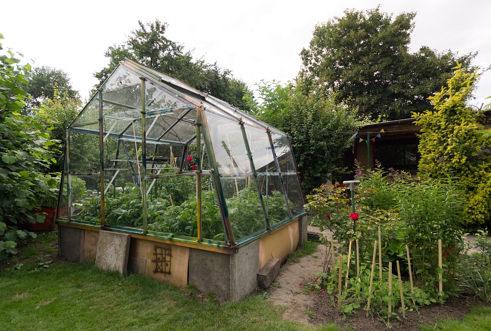 Trotz fehlender Scheiben an Vorder- und Rückseite ließ sich das Gewächshaus den Sommer 2013 über gut benutzen.