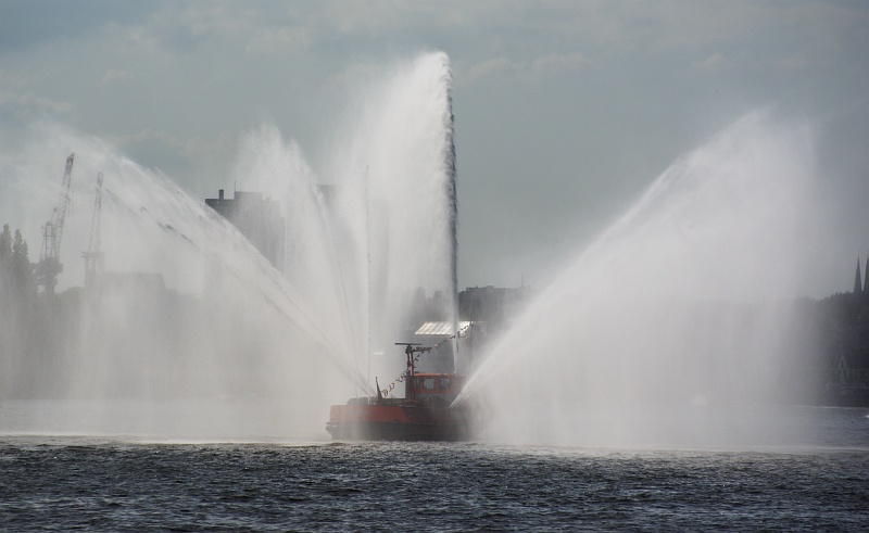 Auf der großen Parade verspritzen die Schiffe der Feuerwehr unglaublich große Mengen an Wasser. (2009)