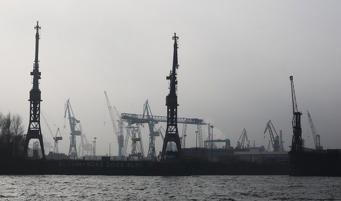 Hafenkräne im Gegenlicht
