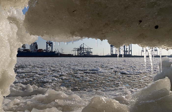 Durchblick zum Burchardkai (Februar 2012).