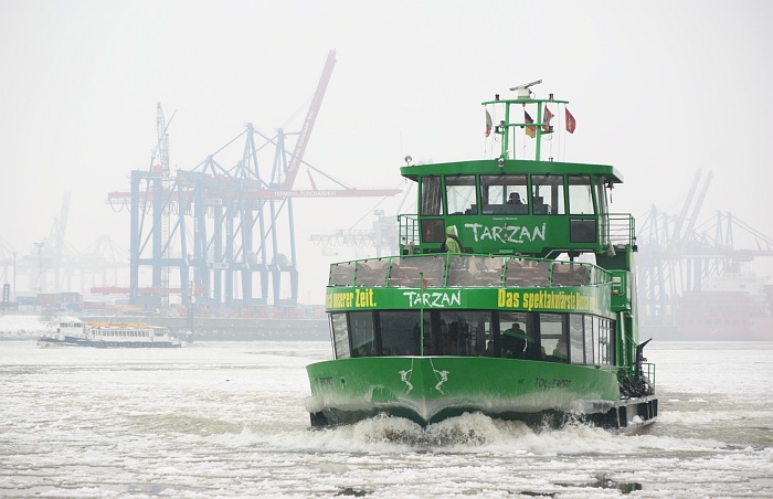 Die Hafenfähre Tollerort auf dem Weg zum Anleger Dockland (Januar 2010).