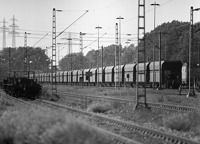 Aus Dutzenden Waggons zusammengestellte Züge befördern bis zu 4600 Tonnen Ladung z.B. nach Salzgitter.
