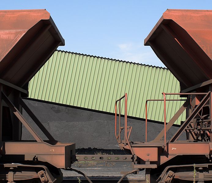 Im Hintergrund sieht man das Transportband, das zum Schüttgebäude hochführt.