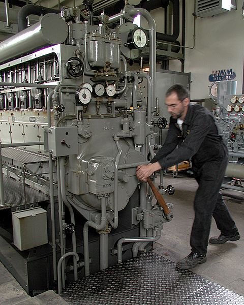 Der U-Boot-Diesel wird angelassen. Zuerst wird Öl durch alle Leitungen gepumpt. Danach wird der Motor mit geöffneten Ventilen durchgeblasen, um eventuelle Ablagerungen aus den Zylindern zu pusten. Die Ventile werden geschlossen und der Motor mit Druckluft gestartet.