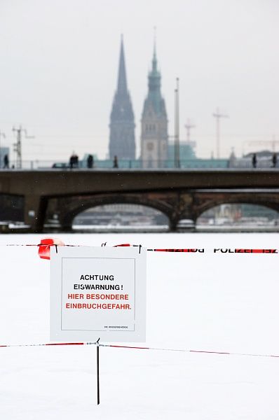 Der Bereich vor Kennedy- und Lombardsbrücke war abgesperrt (Februar 2010).